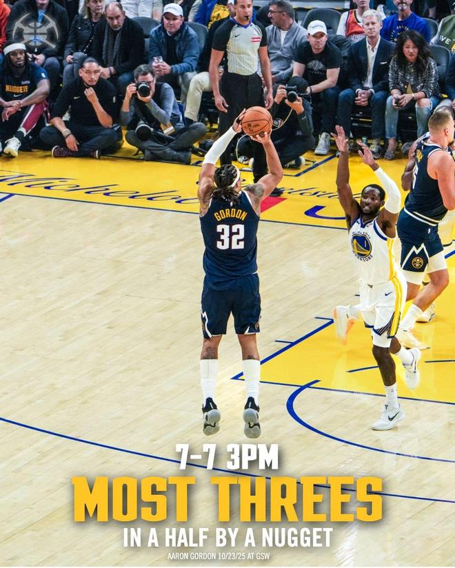 据统计,戈登是NBA历史上第一位在球队赛季揭幕战上半场命中7记三分的球员,此前普尔和塔图姆有过揭幕战上半场6记三分。